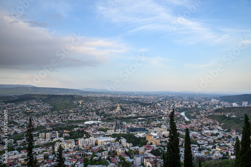 © Mirko, Fototapeta premium Cityscape of Tbilisi, the capital of Georgia, aerial panoramic view from Mtatsminda Park