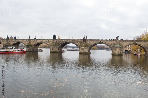 Fototapeta premium Cityscape of the Czech capital Prague and the Vltava river. View of Charles...
