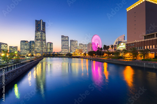Obraz premium Cityscape of Yokohama city at night, Japan