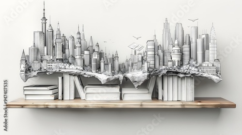 Fototapeta premium Cityscape on a Book Shelf.