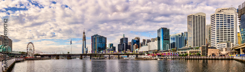 © Ruben, Fototapeta premium Cityscape panorama at Pier 26 and Darling Harbour in Sydney, Australia.