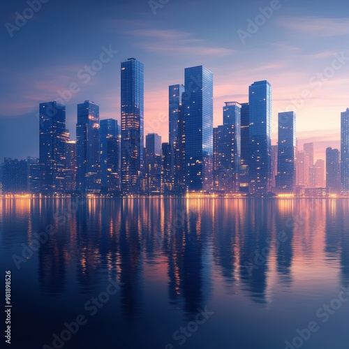 © Jiranath, Fototapeta premium Cityscape Reflection at Dusk