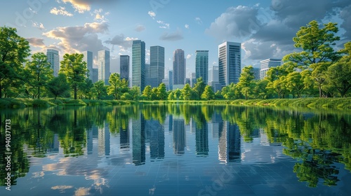 Fototapeta premium Cityscape Reflection in Lake