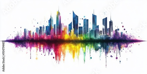 © vanzerim, Fototapeta premium Cityscape Reflection in Watercolor