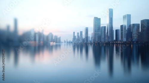 Fototapeta premium Cityscape Reflection: Serene Dawn over Modern Metropolis