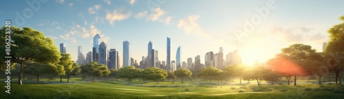 © Murda, Fototapeta premium Cityscape Retreat: Panoramic Glimpse of Central City Park, an Urban Sanctuary