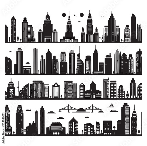 © Joynab, Naklejka premium Cityscape set silhouette vector illustration
