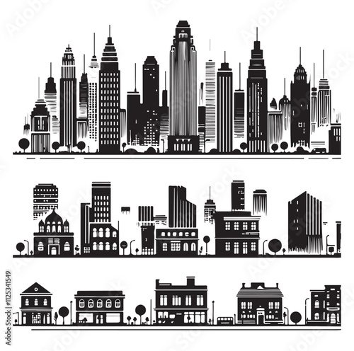 © Joynab, Naklejka premium Cityscape set silhouette vector illustration