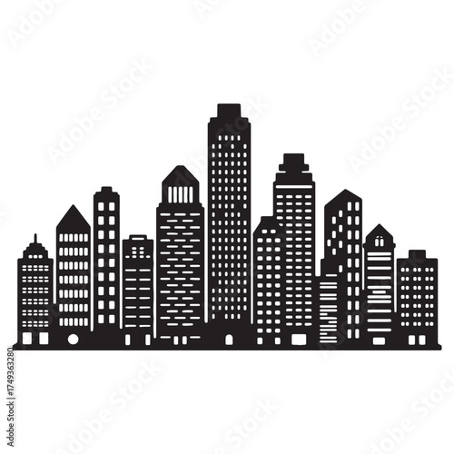 © Tanvir Khan, Naklejka premium Cityscape Silhouette A Stunning Panoramic View of a Modern Metropolis Skyline Against a Clean White Background Artwork