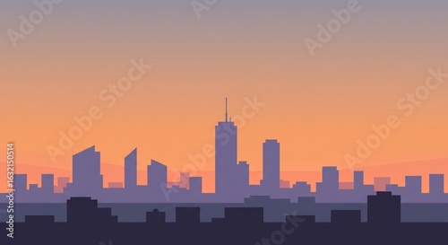 © loxia stock image, Fototapeta premium Cityscape Silhouette at Sunset: A Gradient Sky Over Urban Buildings