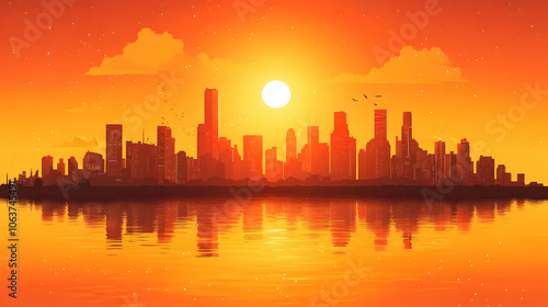 © Siasart Stock, Fototapeta premium Cityscape Silhouette at Sunset Illustration