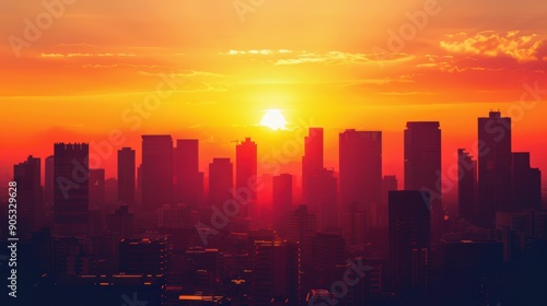 © PalaG, Fototapeta premium Cityscape Silhouette at Sunset - Urban Skyscrapers in Twilight Glow