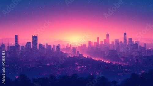 Fototapeta premium Cityscape Silhouette at Sunset with Starry Sky