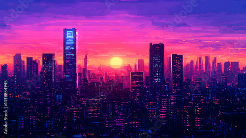 Fototapeta premium Cityscape Silhouette at Sunset with Vibrant Pink and Purple Sky Featuring...