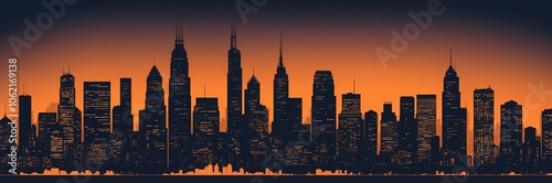 Obraz premium cityscape silhouette north american themed banner with orange backdrop. light...