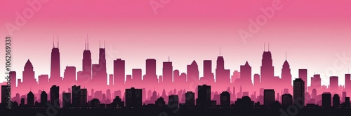 Fototapeta premium cityscape silhouette north american themed banner with pink backdrop. light...