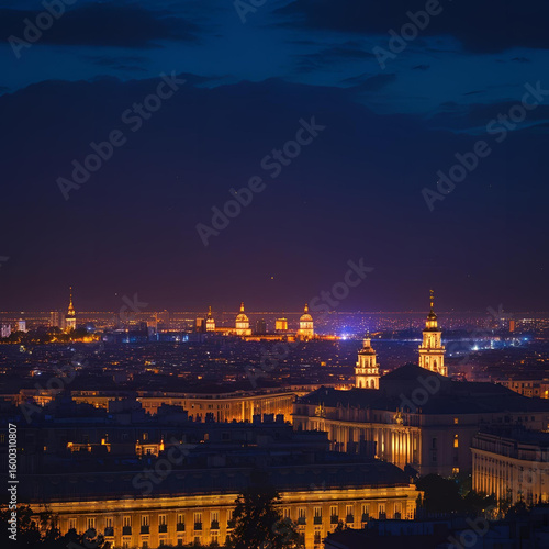 © Dhaarshini, Fototapeta premium cityscape silhouette of madrid at night