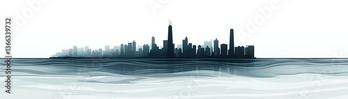 Fototapeta premium Cityscape Silhouette Over Water (1)