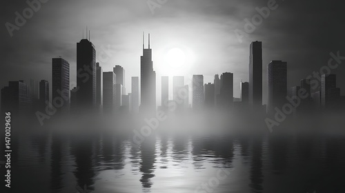 Obraz premium Cityscape silhouette water reflection dusk twilight