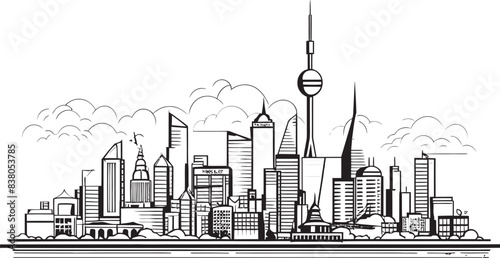 Obraz premium Cityscape Sketch Architectural Icon Linear City Design Building Outline Graphic