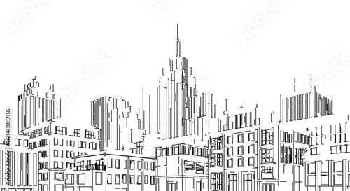 © Handrey, Naklejka premium Cityscape sketch featuring modern architecture and skyscrapers