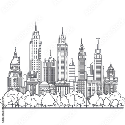 Fototapeta premium Cityscape Skyline Modern Buildings Trees Night View