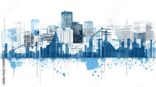 Obraz premium Cityscape Skyline Overlaid With Financial Growth Charts