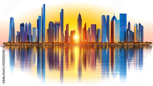 © Fatoniyah, Fototapeta premium Cityscape Skyline Reflection Sunset Urban Panorama