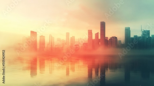 © Komang, Fototapeta premium Cityscape Sunrise Fog (1)