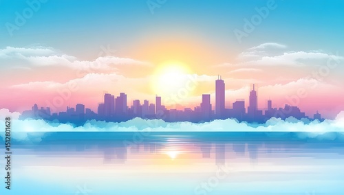 © pbm, Fototapeta premium Cityscape Sunrise Sunset Pastel Colors