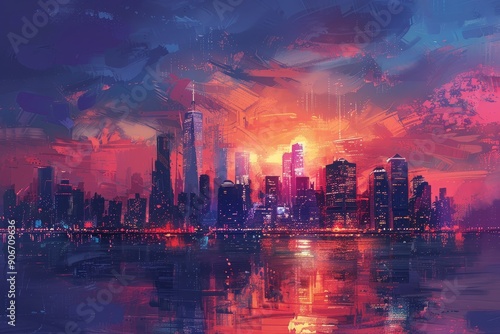 Fototapeta premium Cityscape Sunset - Digital Artwork