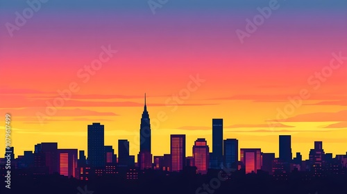 © terat, Naklejka premium Cityscape Sunset Silhouette