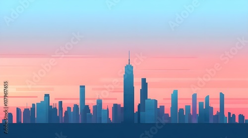 © terat, Naklejka premium Cityscape Sunset Silhouette