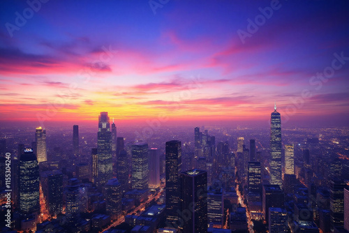Fototapeta premium Cityscape sunset skyscrapers high-rise glass steel concrete sky