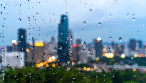 © ooya, Naklejka premium Cityscape through rainstreaked window