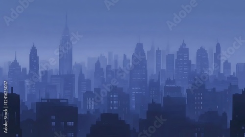 Fototapeta premium Cityscape, twilight, fog, urban, background