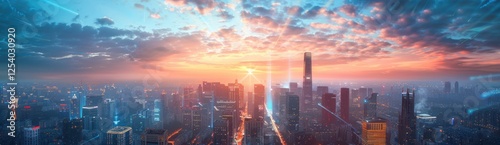 © wijayanto, Fototapeta premium Cityscape Under a Dramatic Sunset