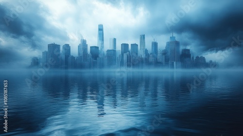 © Alienmarsh, Fototapeta premium Cityscape Under A Foggy Sky