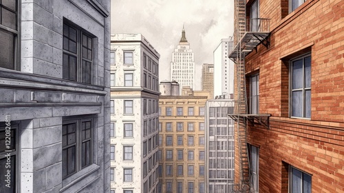 © Sakdecha, Obraz premium Cityscape View Between Buildings with Urban Architecture Elements