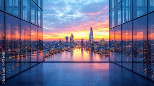 © mega, Obraz premium Cityscape view from modern building at sunset