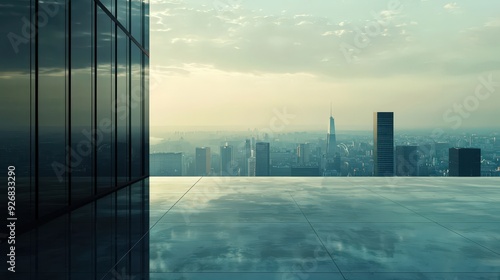© BOJOShop, Fototapeta premium Cityscape View from Rooftop with Glass Wall.
