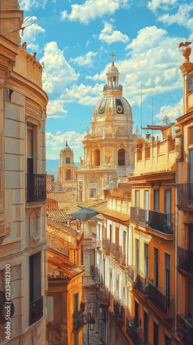 © KOOLAIDMAN100X, Fototapeta premium Cityscape view of church and buildings