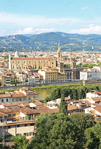 © photo_stella, Obraz premium cityscape view of Florence or Firenze city Italy - Palazzo Vecchio and Arno river view