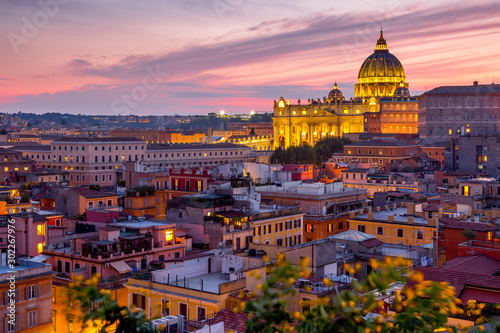 Fototapeta premium Cityscape view of Rome at sunset with St Peter Cathedral in Vatican.