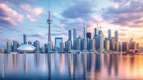 © Anak, Fototapeta premium Cityscape view of tall buildings reflecting in the calm water