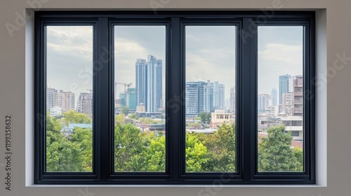 © isrofiyah, Fototapeta premium Cityscape View Through a Modern Window