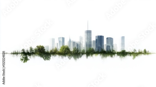 Fototapeta premium cityscape view with building and green tree and the city's reflection on the...