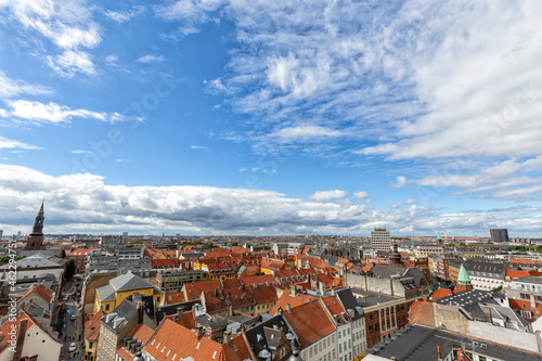 © Danaan, Fototapeta premium Cityscape wide angle view atop the Round Tower in downtown Copenhagen, Denmark.