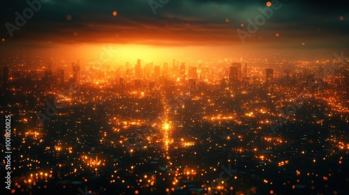 © Dlomiro, Fototapeta premium Cityscape with a Glowing Sunset