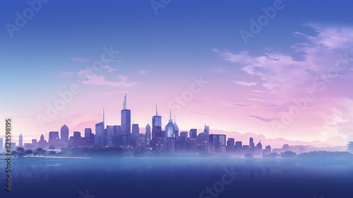 © Amina, Fototapeta premium Cityscape with a vibrant sunrise and clouds.